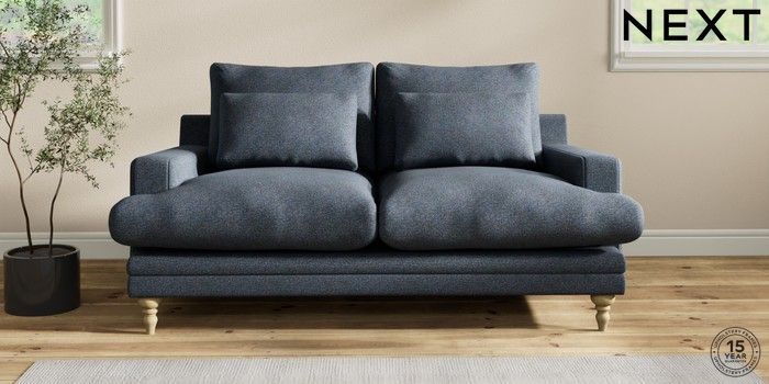 6.12.1 Buy Hutton Deep Relaxed Sit 3 Seater Small Sofa Tweedy Chenille Navy Blue Country Turned - Light from the Next UK online shop Click here to use our accessible website
