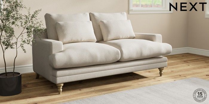 7.0.3 Buy Hutton Deep Relaxed Sit 3 Seater Small Sofa Tweedy Chenille Oyster Country Turned - Light from the Next UK online shop Click here to use our accessible website
