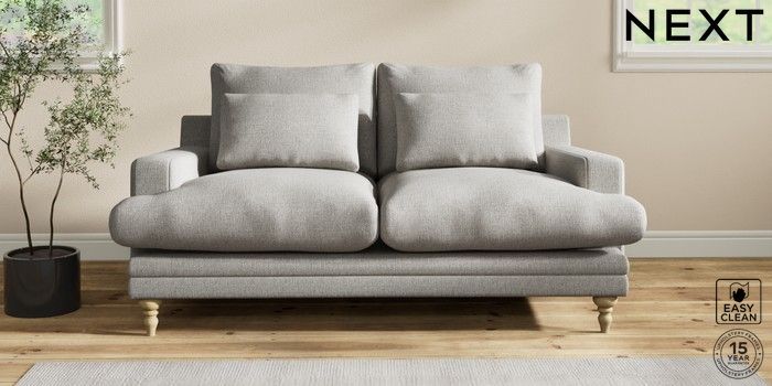 6.12.1 Buy Hutton Deep Relaxed Sit 3 Seater Small Sofa Woven Chenille Easy Clean Light Grey Country Turned - Light from the Next UK online shop Click here to use our accessible website