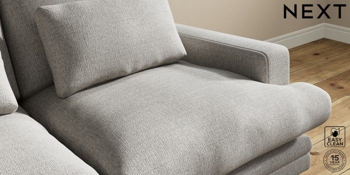 7.0.3 Buy Hutton Deep Relaxed Sit 3 Seater Small Sofa Woven Chenille Easy Clean Light Grey Country Turned - Mid from the Next UK online shop Click here to use our accessible website