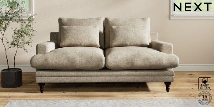 6.12.1 Buy Hutton Deep Relaxed Sit 3 Seater Small Sofa Woven Chenille Easy Clean Mid Natural Country Turned - Dark from the Next UK online shop Click here to use our accessible website