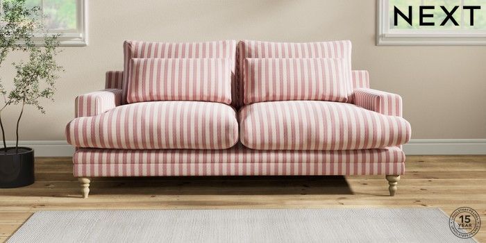 6.12.1 Buy Hutton Deep Relaxed Sit 3 Seater Sofa Bold Chenille Stripe Dark Pink Country Turned - Light from the Next UK online shop Click here to use our accessible website