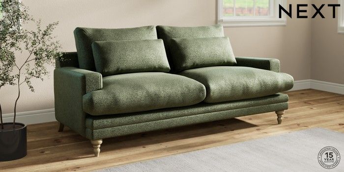 7.0.3 Buy Hutton Deep Relaxed Sit 3 Seater Sofa Boucle Chenille Dark Moss Green Country Turned - Light from the Next UK online shop Click here to use our accessible website