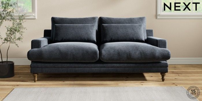 6.12.1 Buy Hutton Deep Relaxed Sit 3 Seater Sofa Boucle Chenille Dark Slate Blue Country Turned - Mid from the Next UK online shop Click here to use our accessible website