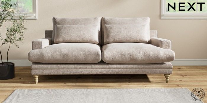 6.12.1 Buy Hutton Deep Relaxed Sit 3 Seater Sofa Boucle Chenille Light Natural Country Turned - Light from the Next UK online shop Click here to use our accessible website