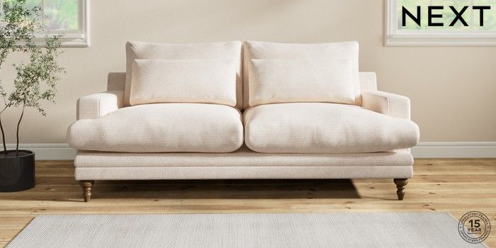 6.12.1 Buy Hutton Deep Relaxed Sit 3 Seater Sofa Boucle Chenille Oyster Country Turned - Mid from the Next UK online shop Click here to use our accessible website