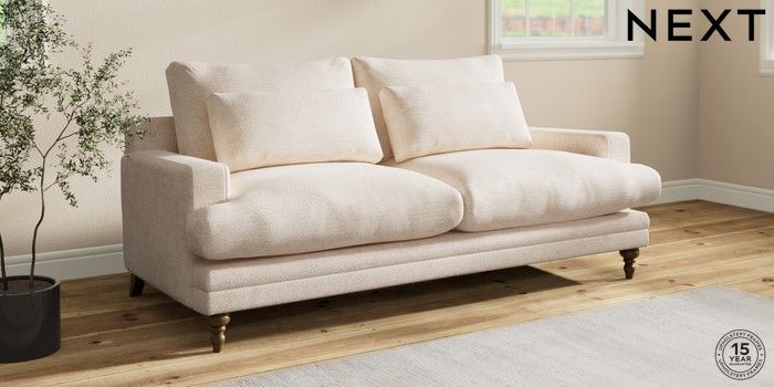 7.0.3 Buy Hutton Deep Relaxed Sit 3 Seater Sofa Boucle Chenille Oyster Country Turned - Mid from the Next UK online shop Click here to use our accessible website