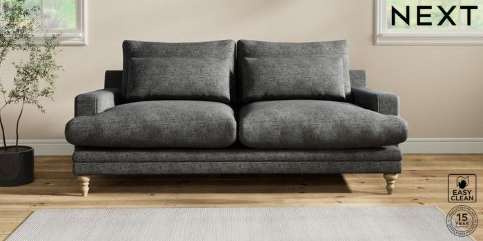 6.12.1 Buy Hutton Deep Relaxed Sit 3 Seater Sofa Boucle Weave Easy Clean Charcoal Grey Country Turned - Light from the Next UK online shop Click here to use our accessible website