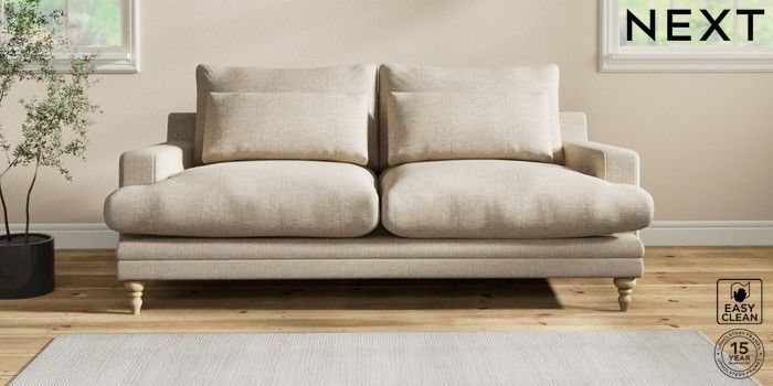 6.12.1 Buy Hutton Deep Relaxed Sit 3 Seater Sofa Boucle Weave Easy Clean Dark Natural Country Turned - Light from the Next UK online shop Click here to use our accessible website