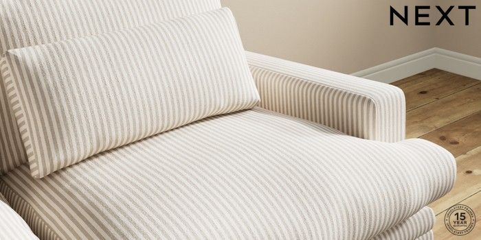 7.0.3 Buy Hutton Deep Relaxed Sit 3 Seater Sofa Chenille Stripe Natural Country Turned - Mid from the Next UK online shop Click here to use our accessible website