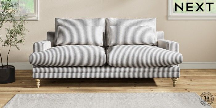 6.12.1 Buy Hutton Deep Relaxed Sit 3 Seater Sofa Chenille Stripe Slate Blue Country Turned - Light from the Next UK online shop Click here to use our accessible website