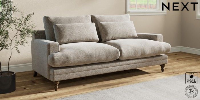7.0.3 Buy Hutton Deep Relaxed Sit 3 Seater Sofa Chunky Boucle Easy Clean Dove Country Turned - Mid from the Next UK online shop Click here to use our accessible website