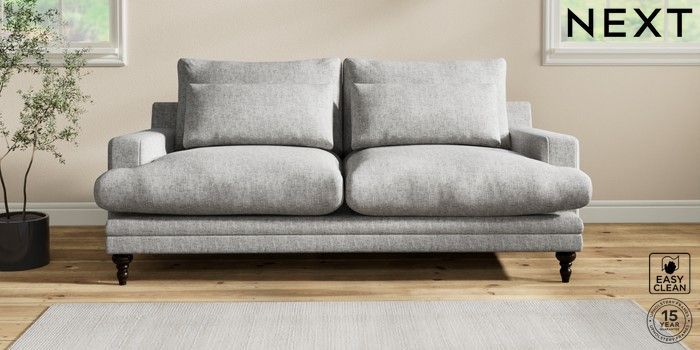 6.12.1 Buy Hutton Deep Relaxed Sit 3 Seater Sofa Chunky Boucle Easy Clean Light Grey Country Turned - Dark from the Next UK online shop Click here to use our accessible website