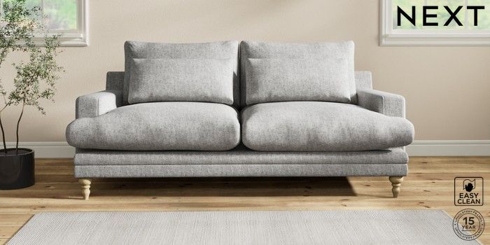 6.12.1 Buy Hutton Deep Relaxed Sit 3 Seater Sofa Chunky Boucle Easy Clean Light Grey Country Turned - Light from the Next UK online shop Click here to use our accessible website