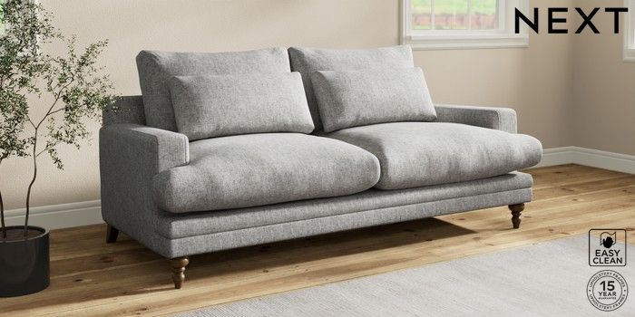 7.0.3 Buy Hutton Deep Relaxed Sit 3 Seater Sofa Chunky Boucle Easy Clean Light Grey Country Turned - Mid from the Next UK online shop Click here to use our accessible website