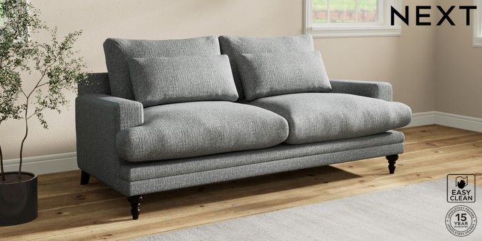 7.0.3 Buy Hutton Deep Relaxed Sit 3 Seater Sofa Chunky Boucle Easy Clean Mid Grey Country Turned - Dark from the Next UK online shop Click here to use our accessible website