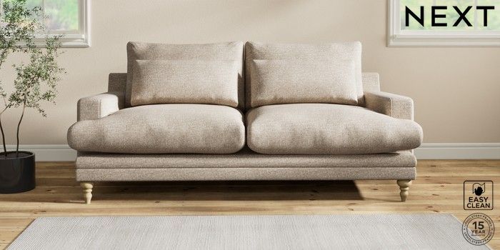 6.12.1 Buy Hutton Deep Relaxed Sit 3 Seater Sofa Chunky Boucle Easy Clean Mid Natural Country Turned - Light from the Next UK online shop Click here to use our accessible website