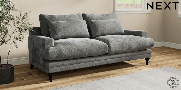 7.0.3 Buy Hutton Deep Relaxed Sit 3 Seater Sofa Chunky Chenille Dark Grey Country Turned - Dark from the Next UK online shop Click here to use our accessible website