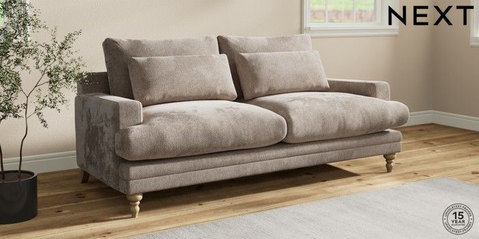 7.0.3 Buy Hutton Deep Relaxed Sit 3 Seater Sofa Chunky Chenille Light Dove Country Turned - Light from the Next UK online shop Click here to use our accessible website