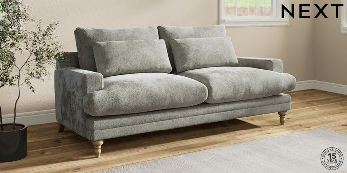 7.0.3 Buy Hutton Deep Relaxed Sit 3 Seater Sofa Chunky Chenille Light Grey Country Turned - Light from the Next UK online shop Click here to use our accessible website