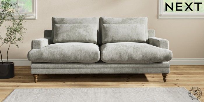 6.12.1 Buy Hutton Deep Relaxed Sit 3 Seater Sofa Chunky Chenille Light Grey Country Turned - Mid from the Next UK online shop Click here to use our accessible website