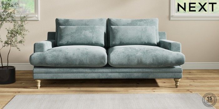 6.12.1 Buy Hutton Deep Relaxed Sit 3 Seater Sofa Chunky Chenille Light Teal Green Country Turned - Light from the Next UK online shop Click here to use our accessible website