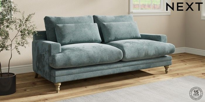 7.0.3 Buy Hutton Deep Relaxed Sit 3 Seater Sofa Chunky Chenille Light Teal Green Country Turned - Light from the Next UK online shop Click here to use our accessible website