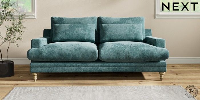 6.12.1 Buy Hutton Deep Relaxed Sit 3 Seater Sofa Chunky Chenille Mid Teal Green Country Turned - Light from the Next UK online shop Click here to use our accessible website