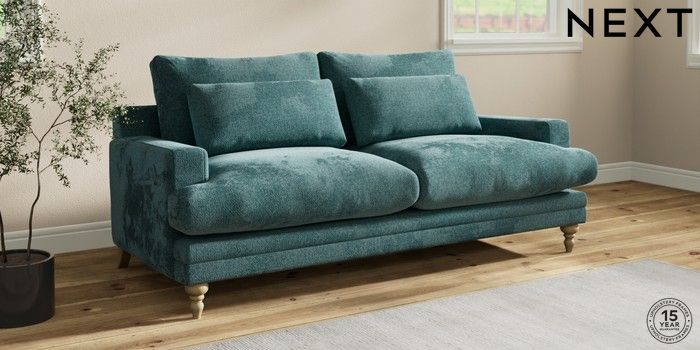 7.0.3 Buy Hutton Deep Relaxed Sit 3 Seater Sofa Chunky Chenille Mid Teal Green Country Turned - Light from the Next UK online shop Click here to use our accessible website