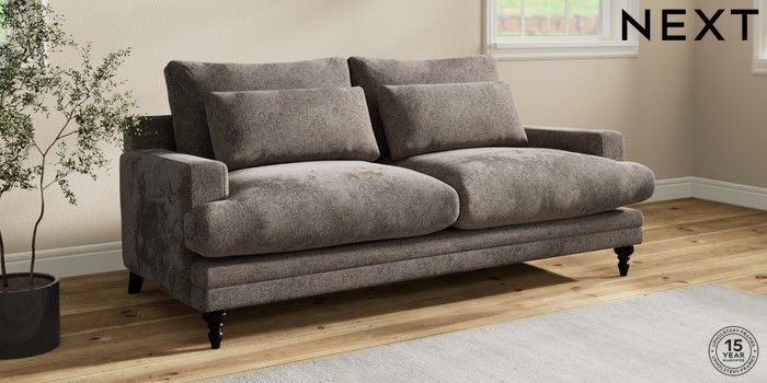 7.0.3 Buy Hutton Deep Relaxed Sit 3 Seater Sofa Chunky Chenille Mink Brown Country Turned - Dark from the Next UK online shop Click here to use our accessible website