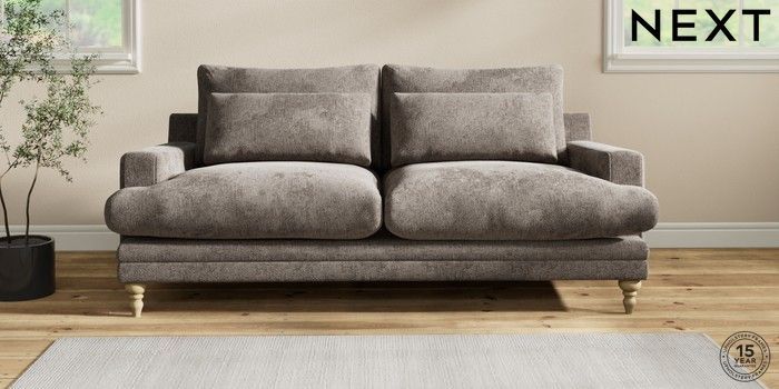 6.12.1 Buy Hutton Deep Relaxed Sit 3 Seater Sofa Chunky Chenille Mink Brown Country Turned - Light from the Next UK online shop Click here to use our accessible website