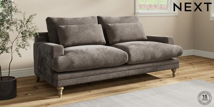 7.0.3 Buy Hutton Deep Relaxed Sit 3 Seater Sofa Chunky Chenille Mink Brown Country Turned - Light from the Next UK online shop Click here to use our accessible website