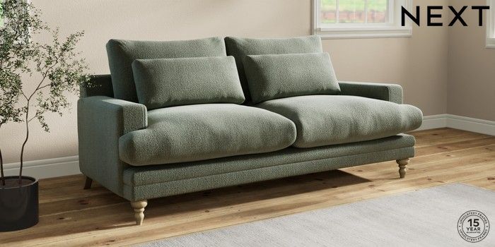 7.0.3 Buy Hutton Deep Relaxed Sit 3 Seater Sofa Chunky Texture Mid Forest Green Country Turned - Light from the Next UK online shop Click here to use our accessible website