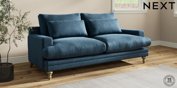 7.0.3 Buy Hutton Deep Relaxed Sit 3 Seater Sofa Cotswold Chenille Dark Blue Country Turned - Light from the Next UK online shop Click here to use our accessible website