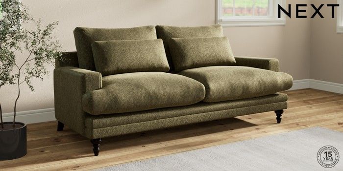 7.0.3 Buy Hutton Deep Relaxed Sit 3 Seater Sofa Cotswold Chenille Dark Green Country Turned - Dark from the Next UK online shop Click here to use our accessible website