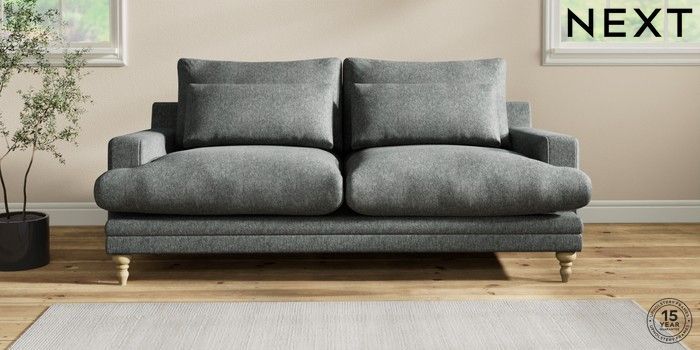 6.12.1 Buy Hutton Deep Relaxed Sit 3 Seater Sofa Cotswold Chenille Dark Grey Country Turned - Light from the Next UK online shop Click here to use our accessible website