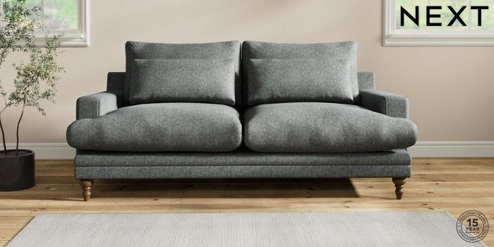6.12.1 Buy Hutton Deep Relaxed Sit 3 Seater Sofa Cotswold Chenille Dark Grey Country Turned - Mid from the Next UK online shop Click here to use our accessible website