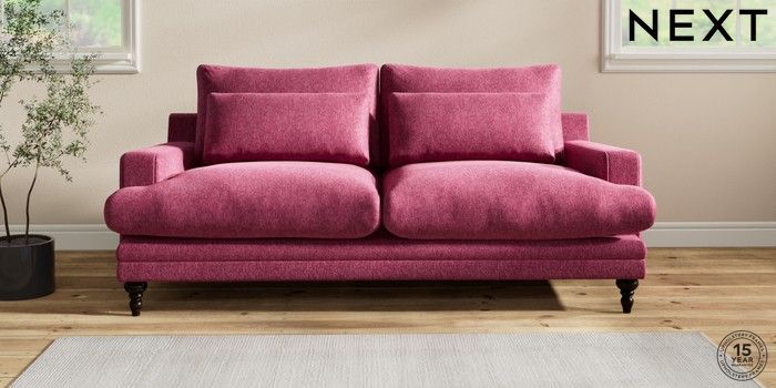 6.12.1 Buy Hutton Deep Relaxed Sit 3 Seater Sofa Cotswold Chenille Dark Raspberry Pink Country Turned - Dark from the Next UK online shop Click here to use our accessible website