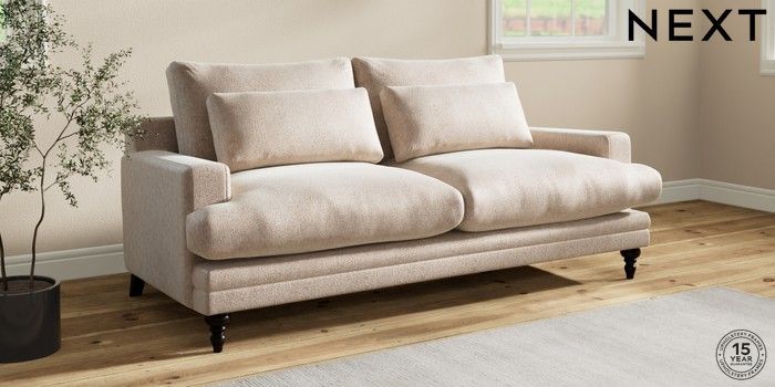 7.0.3 Buy Hutton Deep Relaxed Sit 3 Seater Sofa Cotswold Chenille Light Natural Country Turned - Dark from the Next UK online shop Click here to use our accessible website