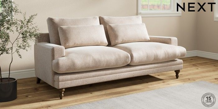 7.0.3 Buy Hutton Deep Relaxed Sit 3 Seater Sofa Cotswold Chenille Light Natural Country Turned - Mid from the Next UK online shop Click here to use our accessible website