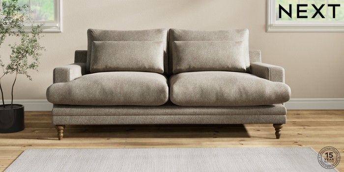 6.12.1 Buy Hutton Deep Relaxed Sit 3 Seater Sofa Cotswold Chenille Mid Mink Brown Country Turned - Mid from the Next UK online shop Click here to use our accessible website