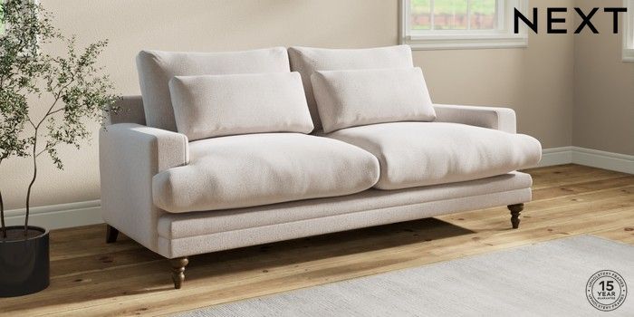 7.0.3 Buy Hutton Deep Relaxed Sit 3 Seater Sofa Cotswold Chenille Oyster Country Turned - Mid from the Next UK online shop Click here to use our accessible website
