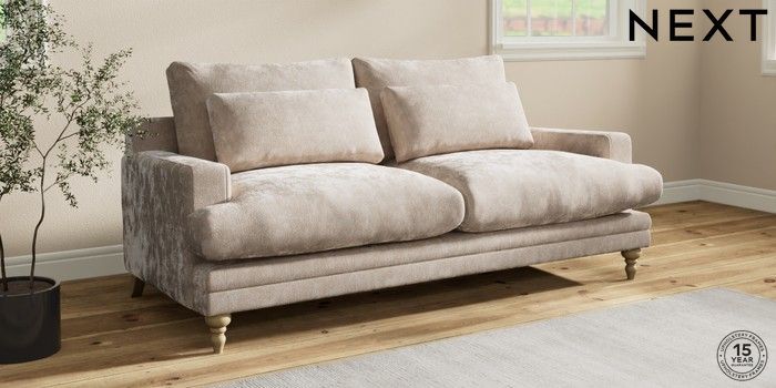 7.0.3 Buy Hutton Deep Relaxed Sit 3 Seater Sofa Distressed Velour Mid Natural Country Turned - Light from the Next UK online shop Click here to use our accessible website