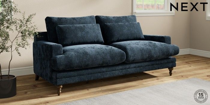 7.0.3 Buy Hutton Deep Relaxed Sit 3 Seater Sofa Distressed Velour Midnight Blue Country Turned - Mid from the Next UK online shop Click here to use our accessible website