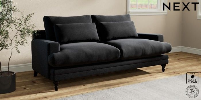 7.0.3 Buy Hutton Deep Relaxed Sit 3 Seater Sofa Fine Chenille Easy Clean Black Country Turned - Dark from the Next UK online shop Click here to use our accessible website