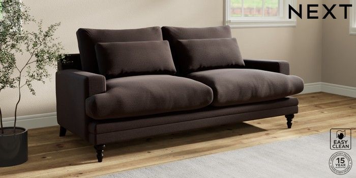 7.0.3 Buy Hutton Deep Relaxed Sit 3 Seater Sofa Fine Chenille Easy Clean Chocolate Brown Country Turned - Dark from the Next UK online shop Click here to use our accessible website