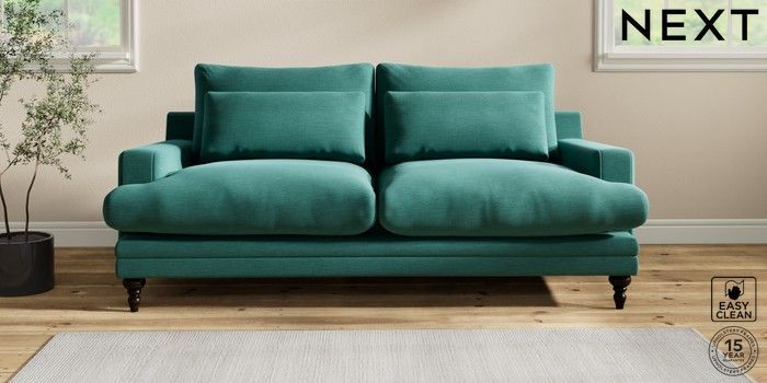 6.12.1 Buy Hutton Deep Relaxed Sit 3 Seater Sofa Fine Chenille Easy Clean Dark Juniper Green Country Turned - Dark from the Next UK online shop Click here to use our accessible website