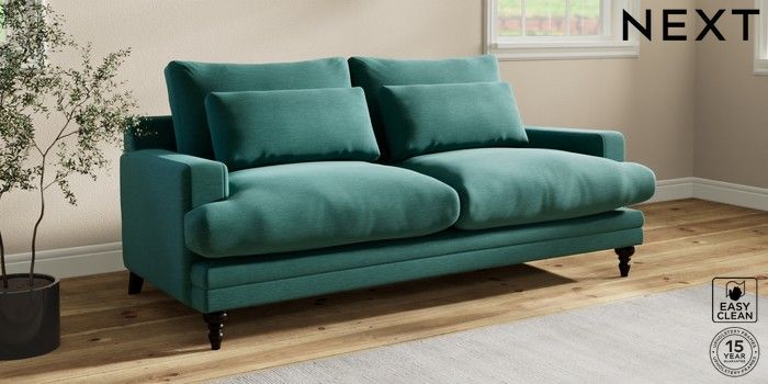 7.0.3 Buy Hutton Deep Relaxed Sit 3 Seater Sofa Fine Chenille Easy Clean Dark Juniper Green Country Turned - Dark from the Next UK online shop Click here to use our accessible website