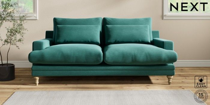 6.12.1 Buy Hutton Deep Relaxed Sit 3 Seater Sofa Fine Chenille Easy Clean Dark Juniper Green Country Turned - Light from the Next UK online shop Click here to use our accessible website