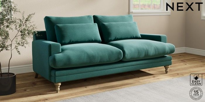7.0.3 Buy Hutton Deep Relaxed Sit 3 Seater Sofa Fine Chenille Easy Clean Dark Juniper Green Country Turned - Light from the Next UK online shop Click here to use our accessible website